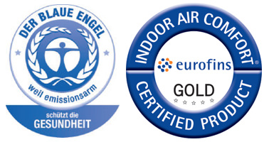 EUROFINS Indoor Air Comfort GOLD – Златната ознака за квалитет на внатрешниот воздух. Eurofins Indoor Air Comfort сертификационата програма ги комбинира критериумите на задолжителните и на доброволните регулативи, одредени од страна на националните сертификациони организации и приватните сертификациони тела, како што се Blue Angel, M1, AgBB, AFSSET и други.